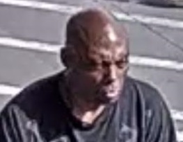 Suspect Description: Black male, medium build, bald, wearing a black t-shirt and blue jean shorts.